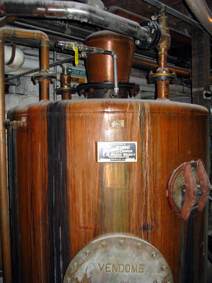 А вторая дистилляция бурбонов происходит в «даблере» — это обычный pot still, часто на него вовсе не похожий на шотландский, не такой изящной и красивой формы и без длинной шеи, то тем не менее это просто котел. Так что спирт, после отсечения «голов» и «хвостов», который идет на выдержку, все-таки результат дистилляции в традиционном кубе.